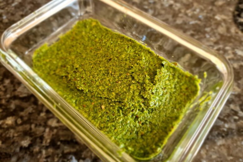 Hier trifft der Norden auf Europas Süden, besonders im Vorfrühling. Das Pesto schmeckt wie immer als mit dem Pasta-Kochwasser gestreckte Sauce zu Pasta, aber auch zu Fisch oder als Dip …