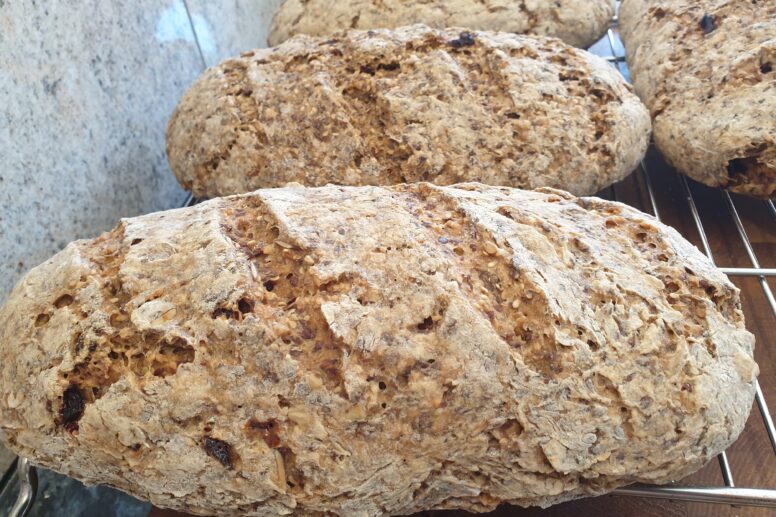 Dinkel-Roggen-Mischbrot mit Leinsamen, Cranberries und Walnüssen