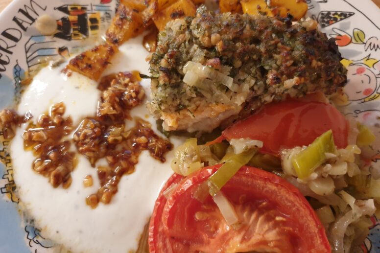 Lachs im Walnuss-Parmesan-Kräuter-Mantel