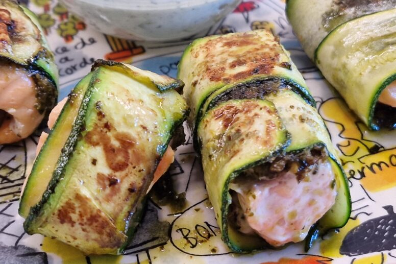 Lachs im Zucchinimantel mit Minz-Tzatziki