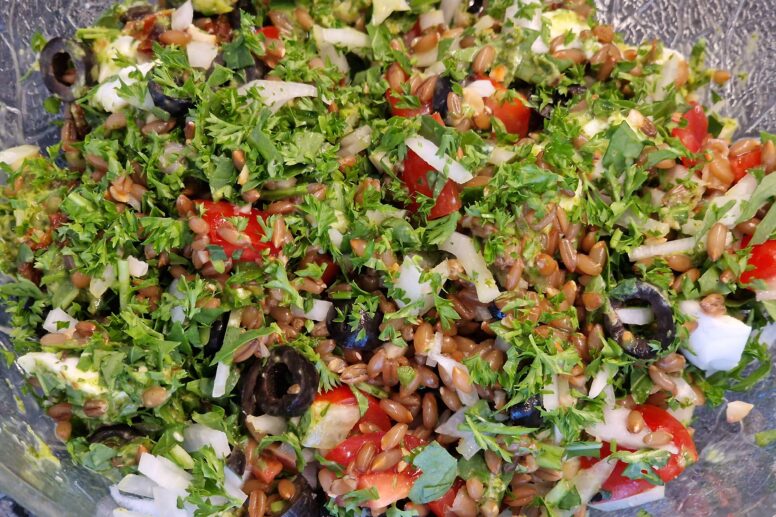 Mediterraner Salat mit Roggen, Tomaten und Oliven
