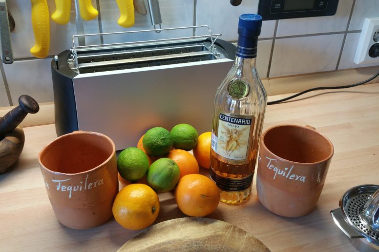 Zutaten Limetten, 4 Stück, ausgepresst Orangen, 4-6 Stück, ausgepresst Tequila, Schuss, je nach Geschmack Sekt, 1 Flasche Eis Zutaten mischen, Eis in die Becher geben – Prost!