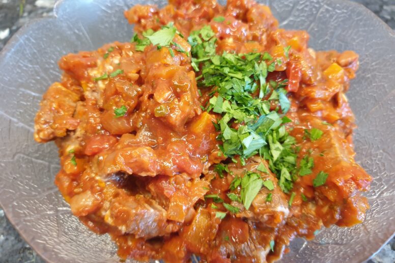 Zutaten 700 g Querrippe vom Rind 2 Möhren, gewürfelt 5 Tomaten, gewürfelt 1 Knolle Knoblauch, fein gepresst 1 Gemüsezwiebel, fein geschnitten Kräuter, 2 fein geschnittene Stengel (Salbei, Rosmarin) etwas Pfeffer, …