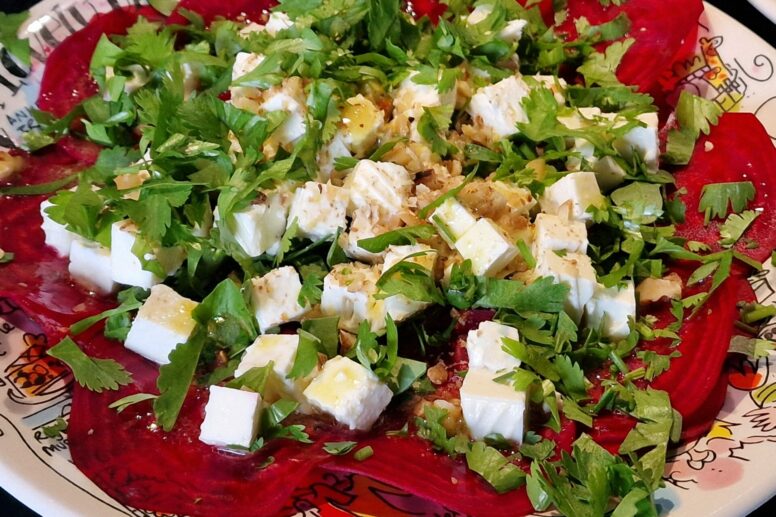 Rote Beete aus eigener Gartenernte nach Annes Empfehlung als Vorspeisenvorschlag – mit Ziegenkäse und Honig. Zutaten 1 Rote Bete, vorgekocht Feldsalat, etwa 1 Handvoll 2 Esslöffel Honig ¼ Rolle Ziegenkäse, …